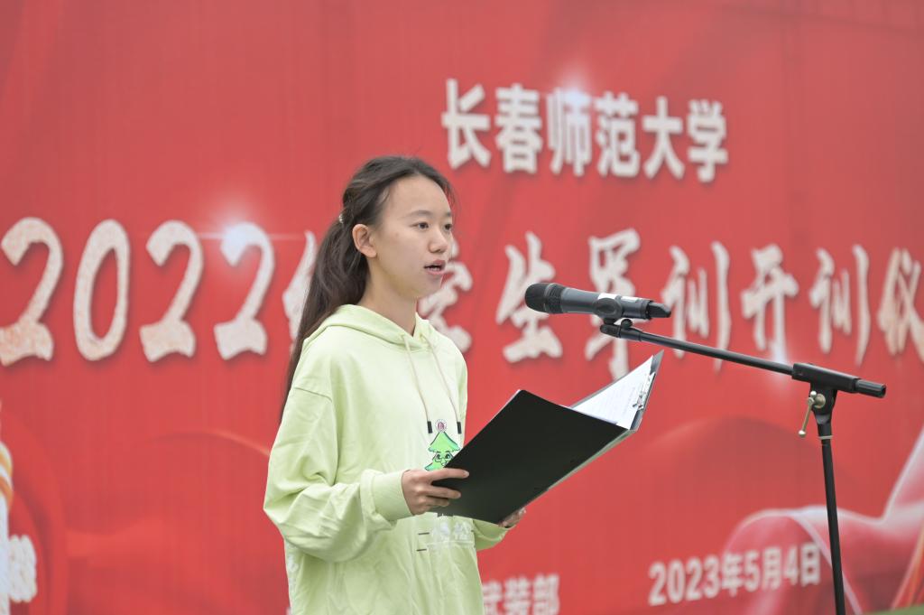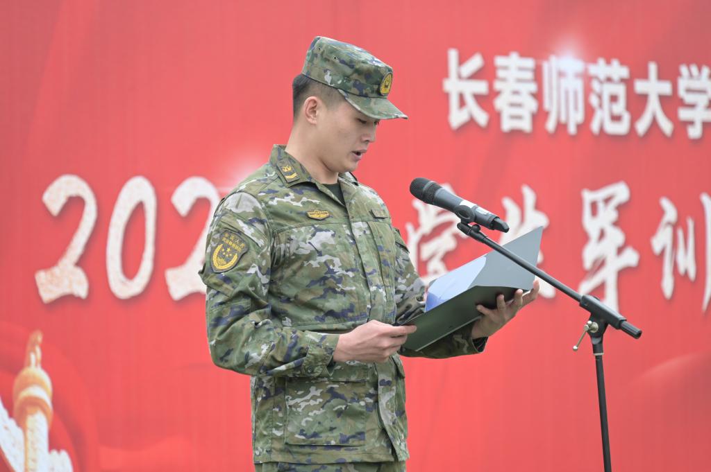 文学院门伟、李晓龙,教育学院戴铭伯在各校区开训仪式上代表全体带训教官发言。他们表示,定会坚决服从军训团的管理,严格落实军训计划,科学组训、文明施训,决不辜负学校的信任和嘱托,确保军训达到预期效果。