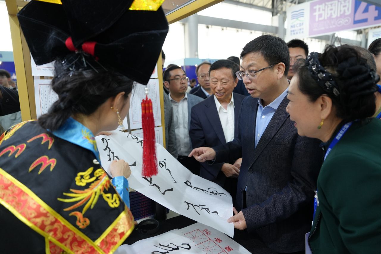 5月17日-19日,由吉林省出版协会、吉林省书刊发行行业协会主办的“首届东北图书交易博览会”在长春市国际会展中心举行。我校省级非遗项目“满语文”作为吉林省15个代表性项目入驻“非物质文化遗产展区”展示,吉林省委常委、宣传部部长曹路宝莅临展位参观。