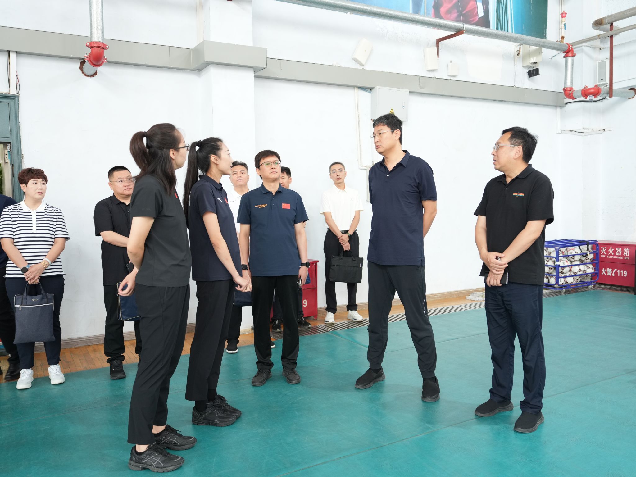 省体育局群体处处长张晓东、科教处处长郑海涛、产业处处长姚涛、法宣处处长杨帅、办公室主任张太岩、乒曲篮武中心主任刘立杰、办公室干部白杨,学校相关部门负责人等参加调研。