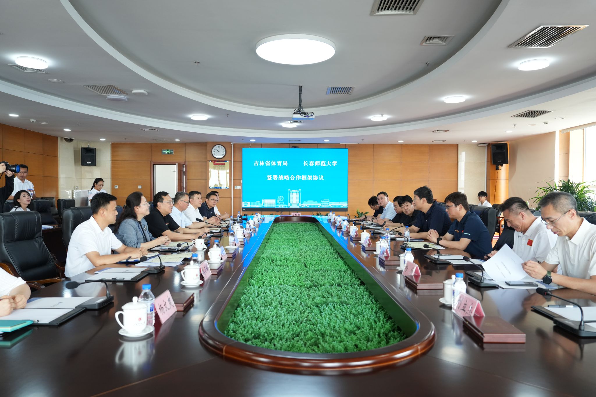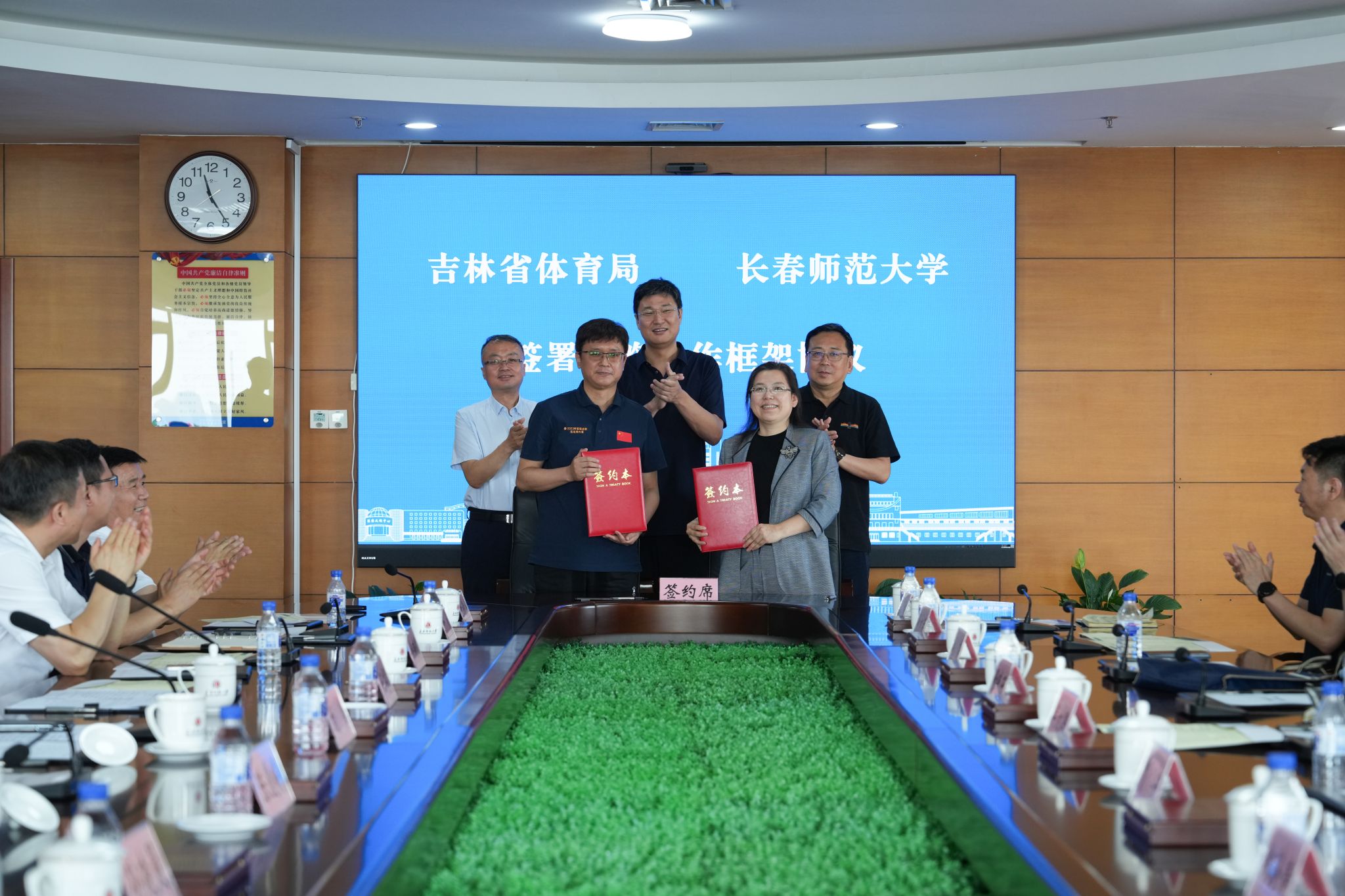 随后,双方就进一步合作意向展开交流。吉林省体育局副局长贾宁和副校长陈爱梅签订战略合作协议。