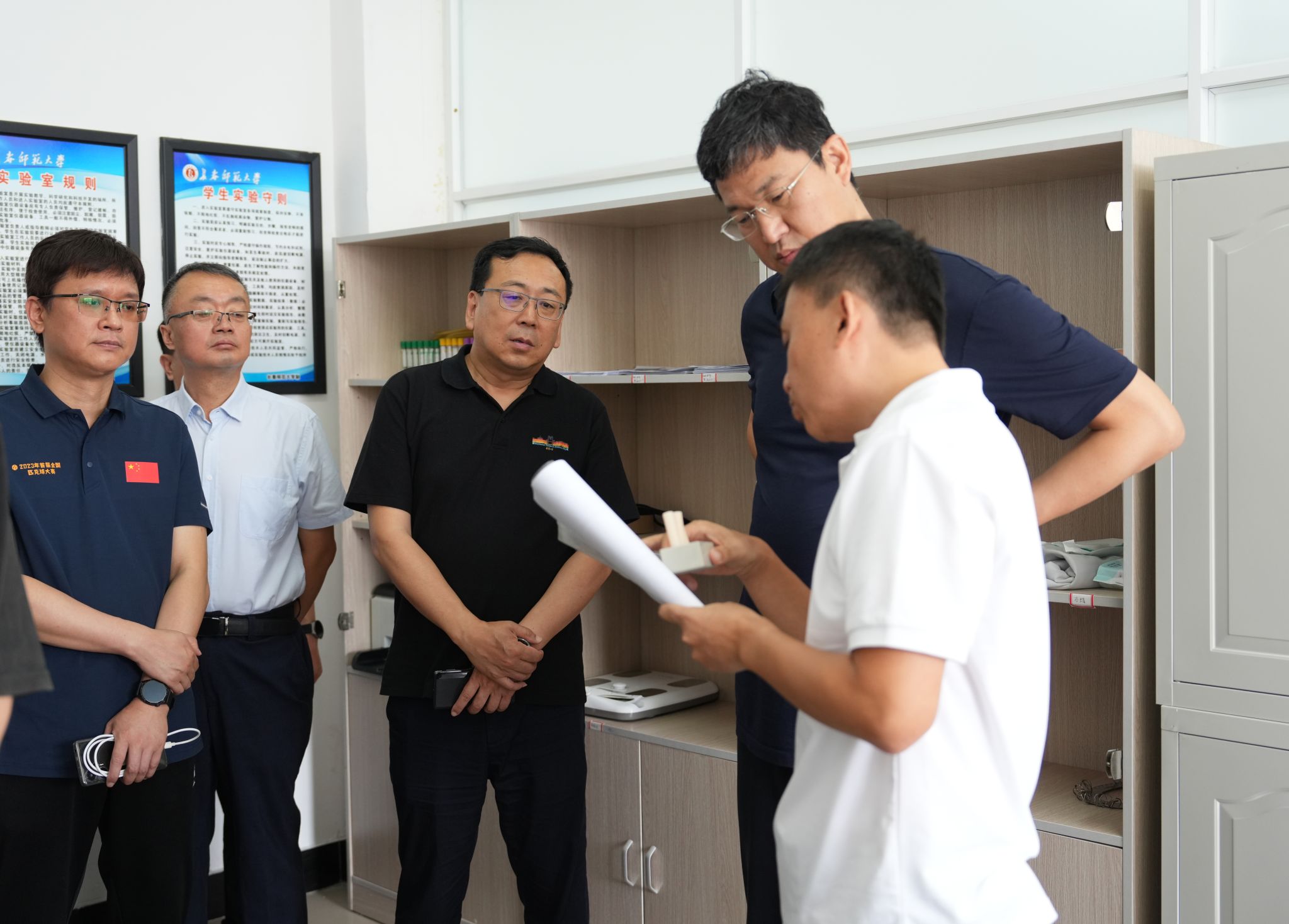 在体育学院实验中心,牟大鹏听取了体育学院教师蓝永生对相关仪器设备的介绍,并详细问询各种仪器设备的功能等情况。